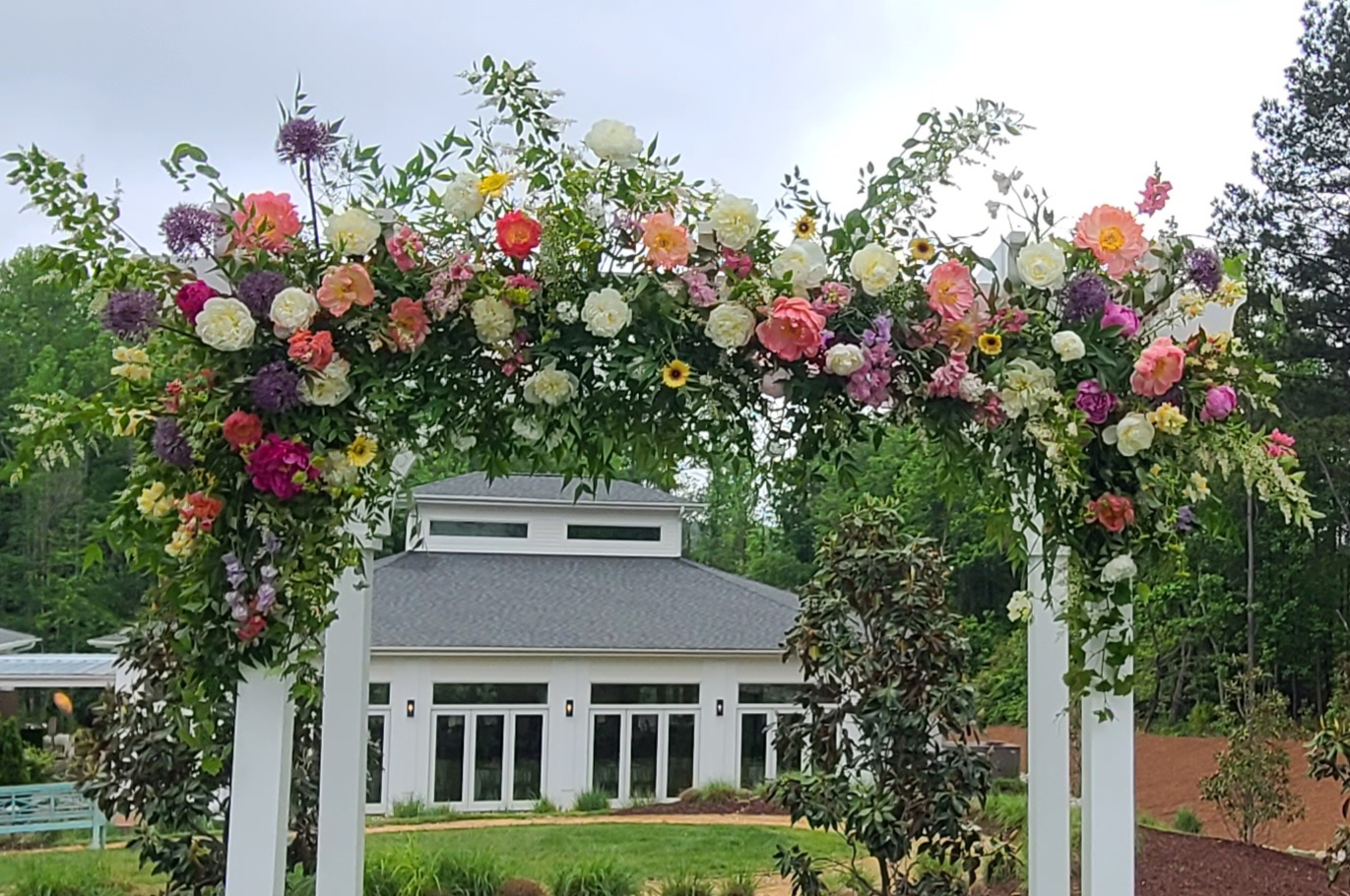 I started in an 8′ by 10′ plot on my family’s farm in Yanceyville and have grown up to a five-acre flower farm. To me, Rosy Moon is all about connecting with nature, fulfilling my passion for sustainability, and sharing that world with our clients. I love the process of bringing clients’ ideas to life, putting together colors, themes, and ideas to create floral designs that feel special and unique.